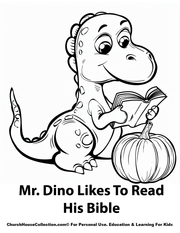 Mr. Dino Likes To Read His Bible Pumpkin Coloring Page