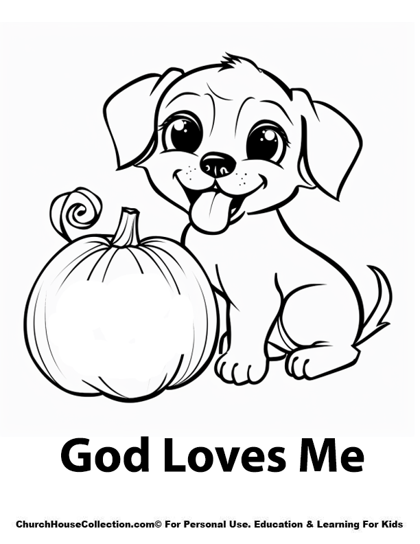 God Loves Me Dog Pumpkin Coloring Page