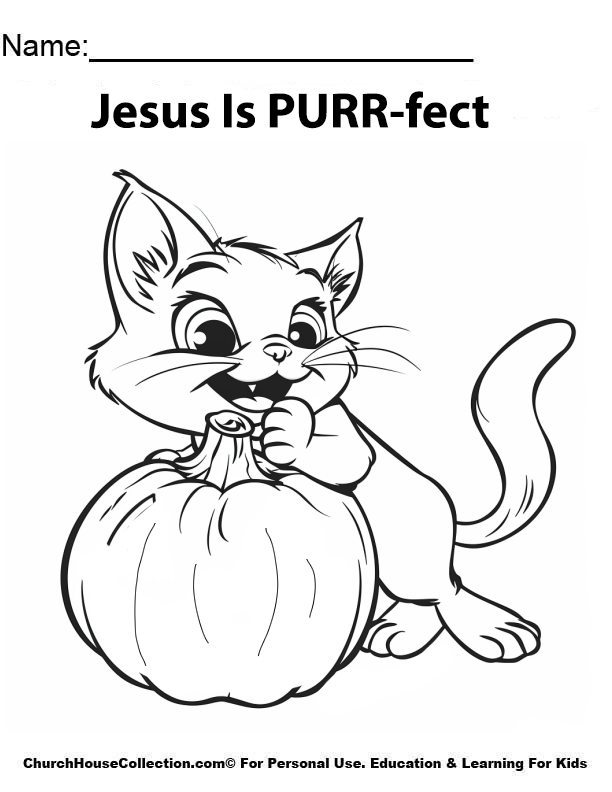 Jesus Is PURR-fect Cat Pumpkin Bible Coloring Page