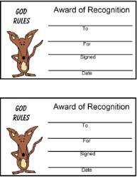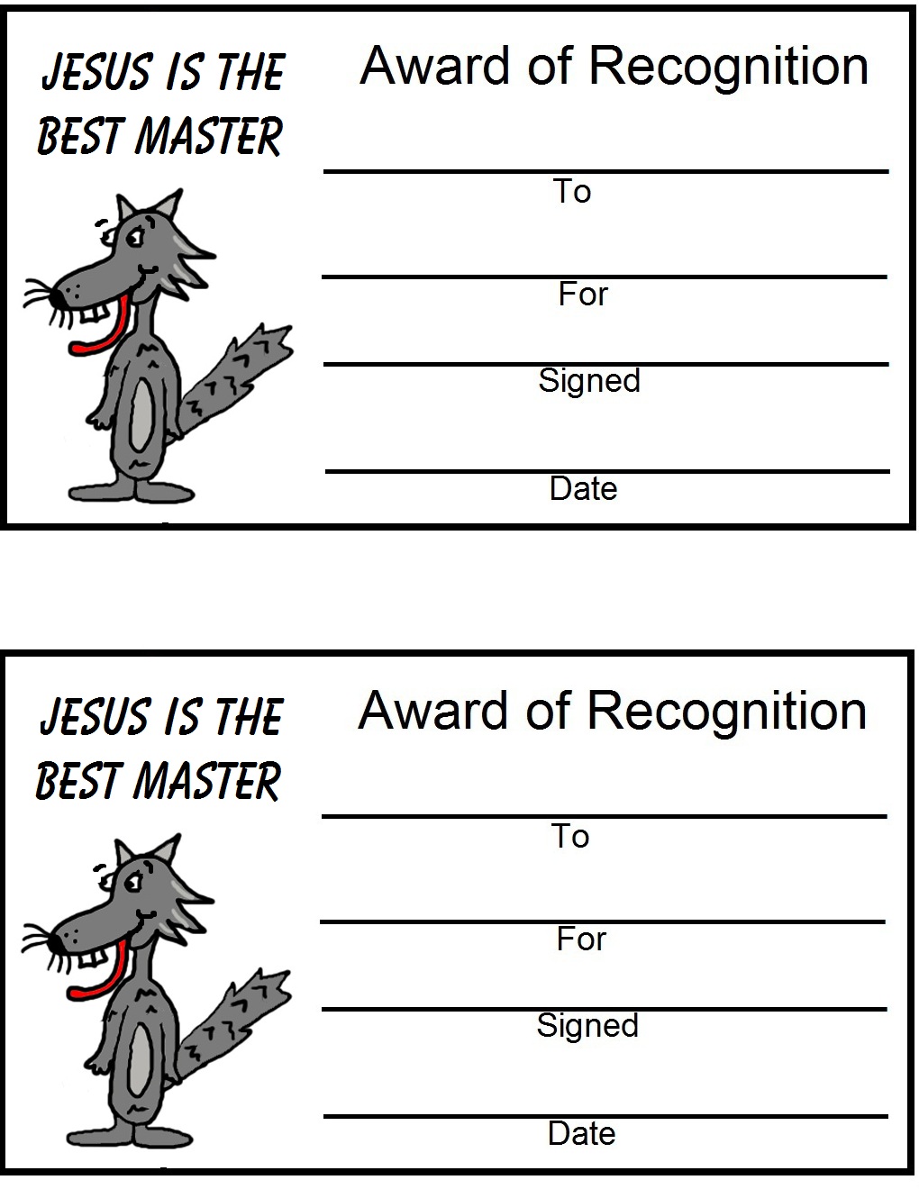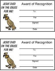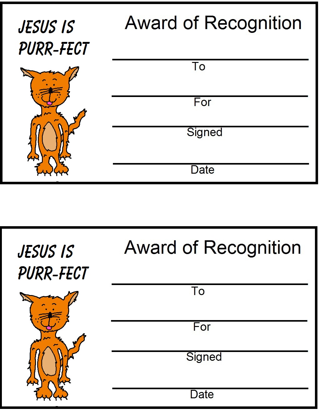 Just print out the award certificate and cut them out. Laminate the awards and then pass them out to the kids in Church.