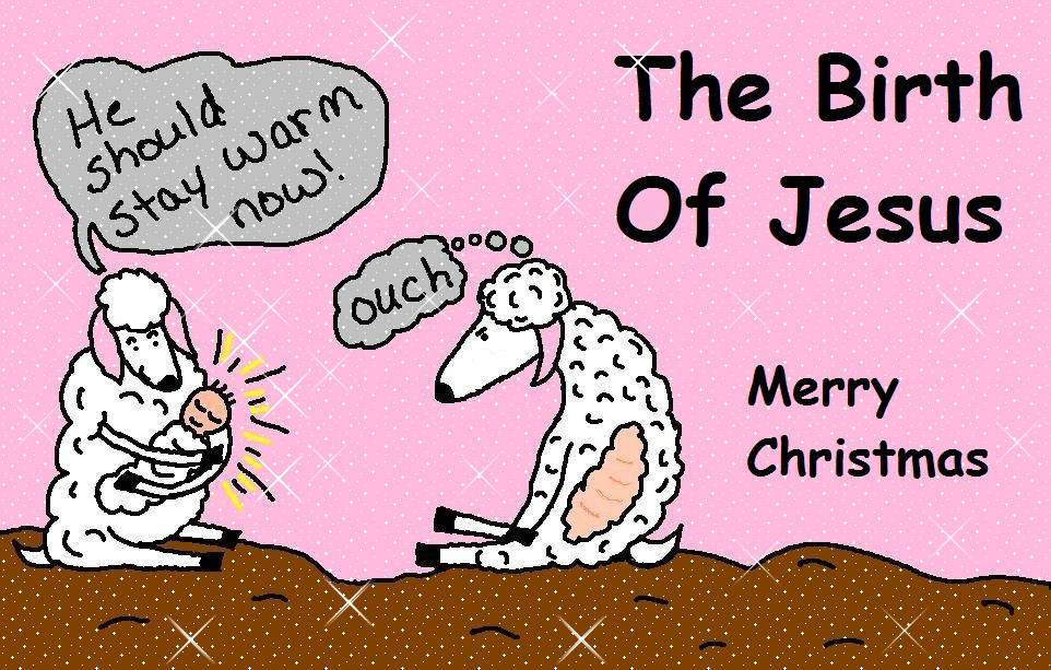 Christmas Nativity /Sheep Holding Baby Jesus Wrapped In Sheep Fur/ The Birth Of Jesus Merry Christmas Glitter Graphics
