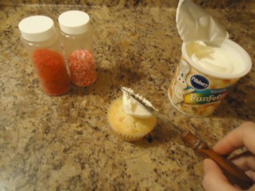 Take your baked cupcake and smear white frosting on top. Add pink sprinkles. Print the template and cut the hearts out. Tape to a toothpick. Stick it down in the finished cupcake. Take these cupcakes to Children's Church for your kids on Valentine's Day.