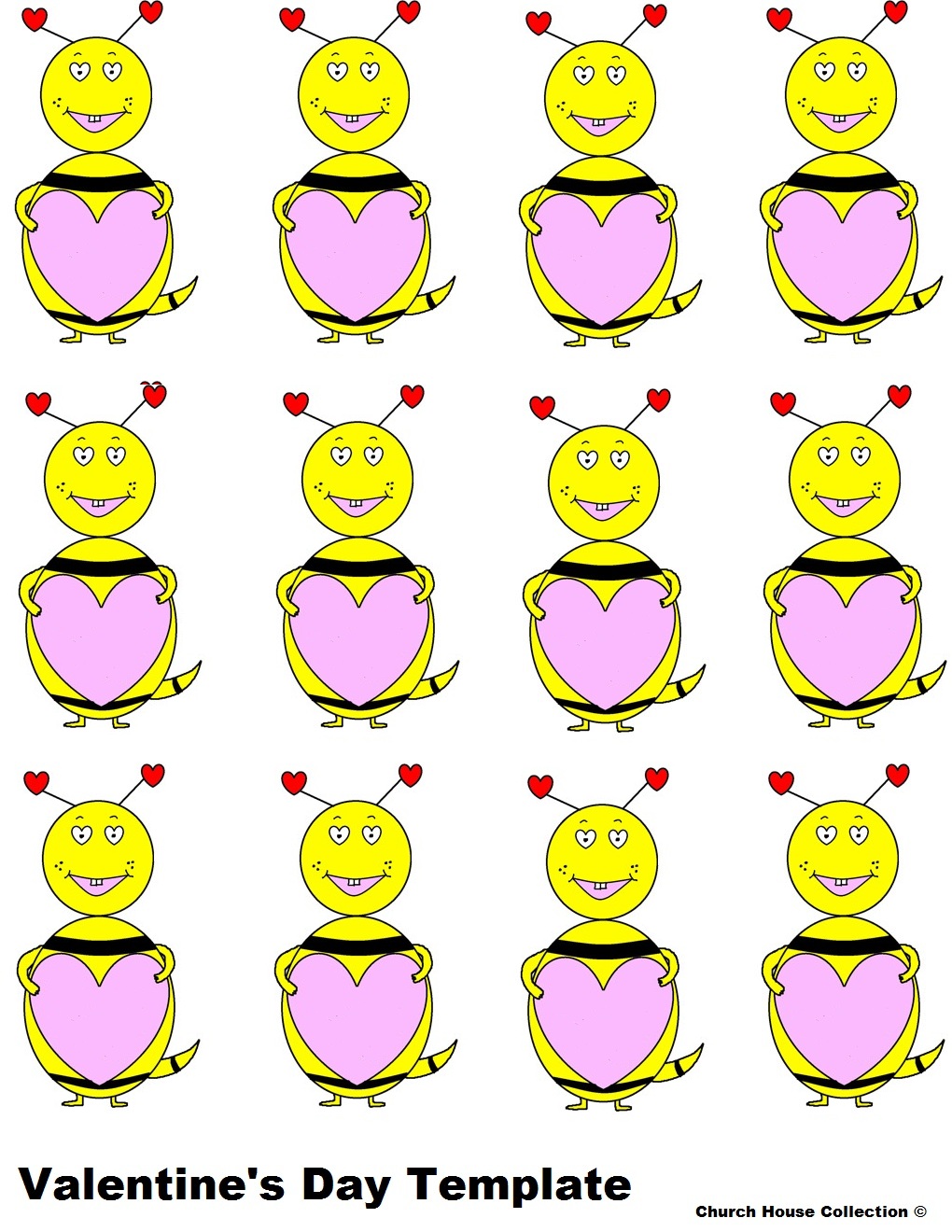 Print, laminate and cut out. Add to your bulletin board for Church. Or bake a sheet cake and lay the laminated cut out bee down on the icing. Sprinkle red hearts or sprinkles over the white icing.