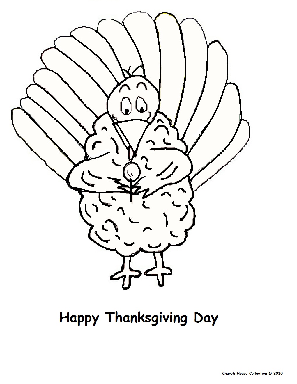 Happy Thanksgiving Day Turkey Coloring Page With and Without Words